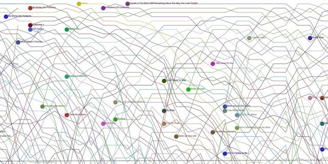 }]For every hit, going back to 1958. Then I wanted to rearrange chart data over time, so that instead of having charts, I had a song-oriented representation, so like:
